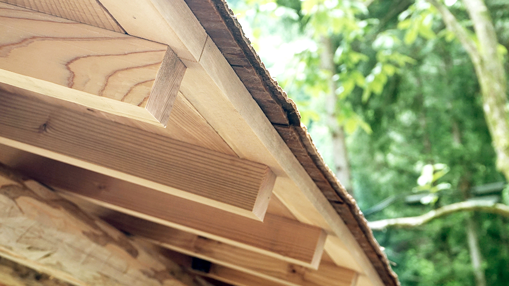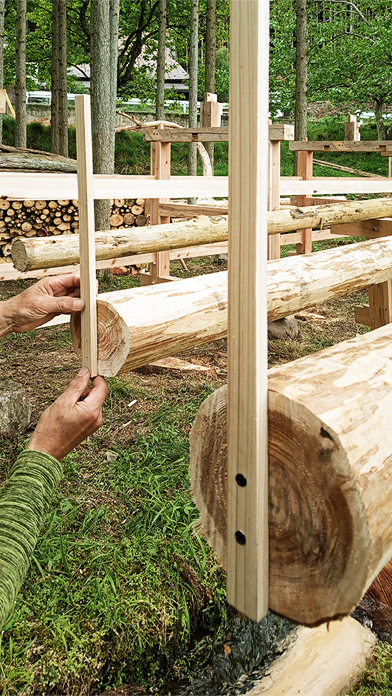 With an interest in bark roofs, I went to learn from traditional craftsmen and 2m26 the basic principles and craft of making a natural roof using cedar bark. This is a small structure to keep logs dry.