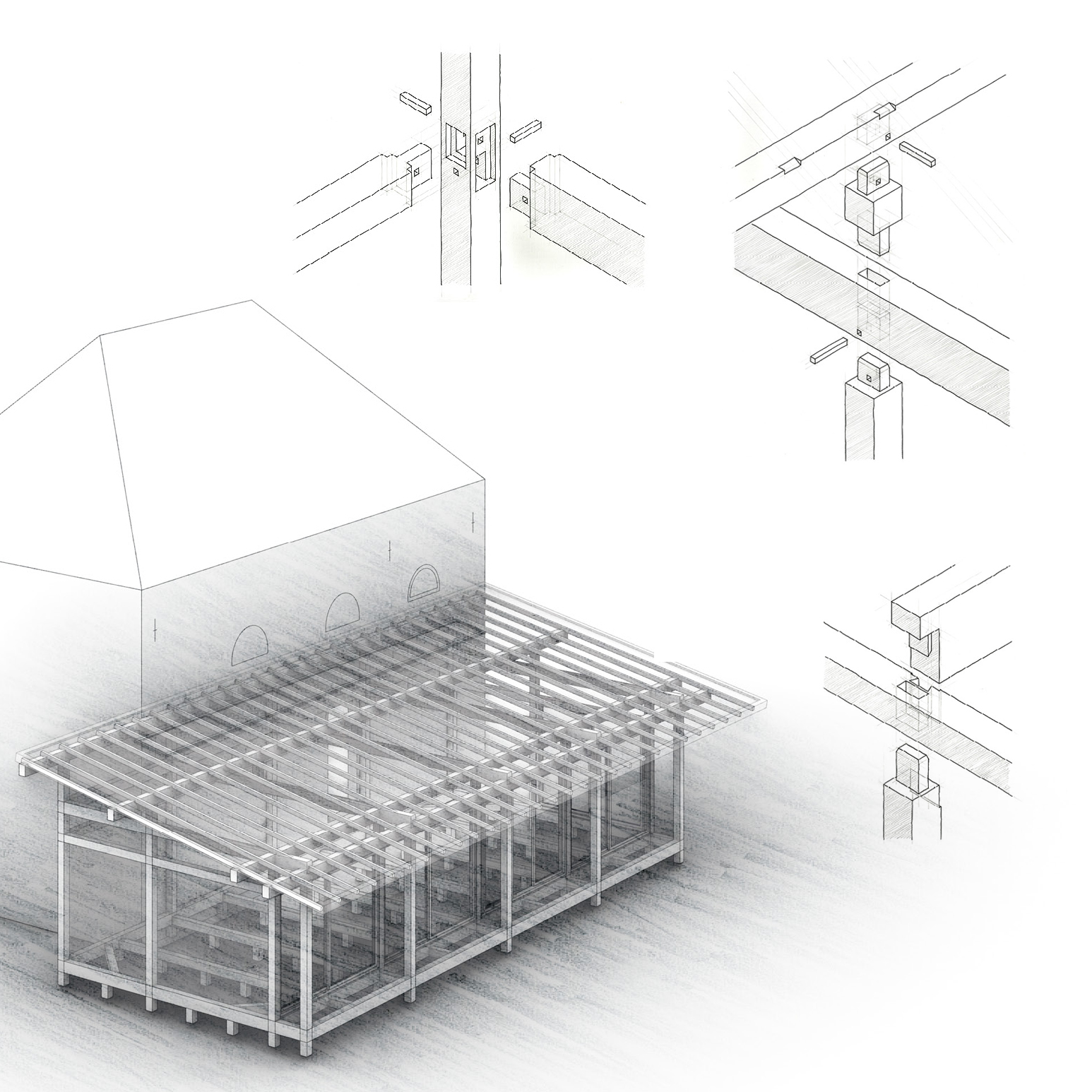 The Moraine is a 19th-century former coach house located on the Dutch-German border. Now leasing a new life as a center for Arts & Crafts. An ‘unplugged’ woodworkshop will be built replacing an existing overhang. Traditional construction methods will be used and as many natural building materials as possible.